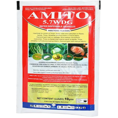 Amito 5.7WDG (10 grams) is an insecticide formulation containing Emamectin Benzoate as its active ingredient. It is used primarily for the control of various pests in agriculture.