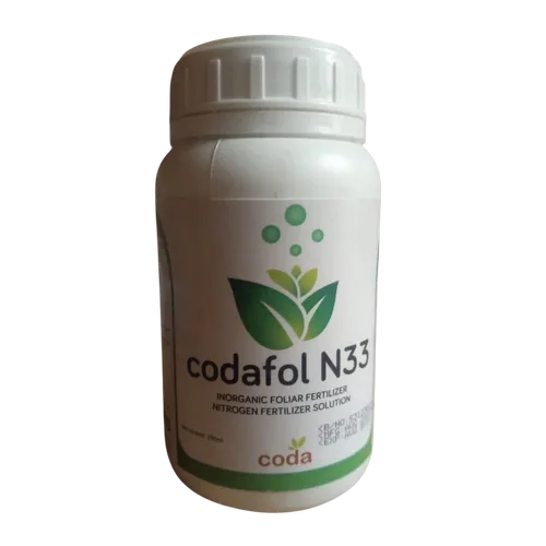 CODAFOL N33 is a liquid foliar fertilizer containing 33% nitrogen, typically used for improving crop growth and boosting overall plant health.
