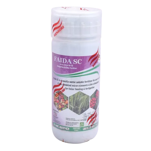 Faida SC (24:24:18 + TE) is a water-soluble fertilizer designed for use in various crops. It contains a balanced mix of nitrogen (24%), phosphorus (24%), and potassium (18%), along with chelated trace elements (TE).
