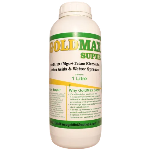 Goldmax Super is a high-quality, balanced NPK liquid fertilizer formulated to support plant growth through key stages of development.