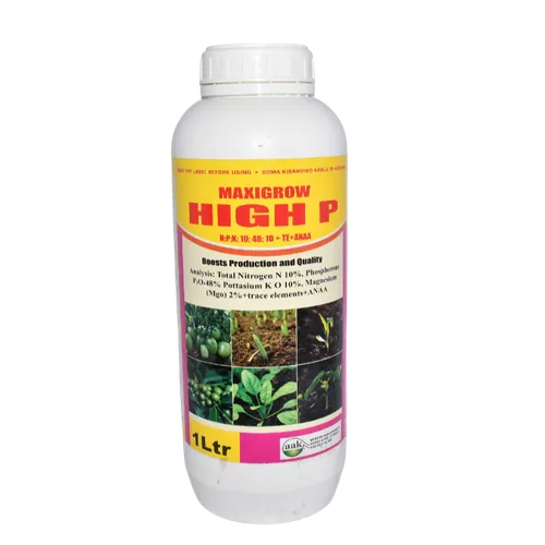 Maxigrow High P is a liquid phosphorus-rich fertilizer designed to support root development, flowering, and fruit formation in plants.