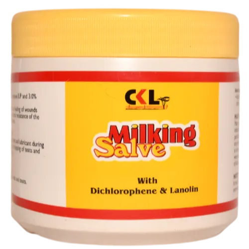 Milking Salve is a topical ointment used in the care and maintenance of dairy cows, particularly to soothe and protect the udders during the milking process.