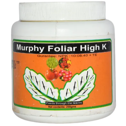 MURPHY FOLIAR HIGH K is a water-soluble foliar fertilizer with a high potassium (K) content, formulated to support flowering, fruit development, and plant maturation.