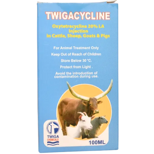 Twigacycline 20% is a broad-spectrum antibiotic used to treat bacterial infections in livestock. It contains oxytetracycline, which is effective against a wide range of Gram-positive and Gram-negative bacteria. It is commonly used for respiratory, urinary, and soft tissue infections.