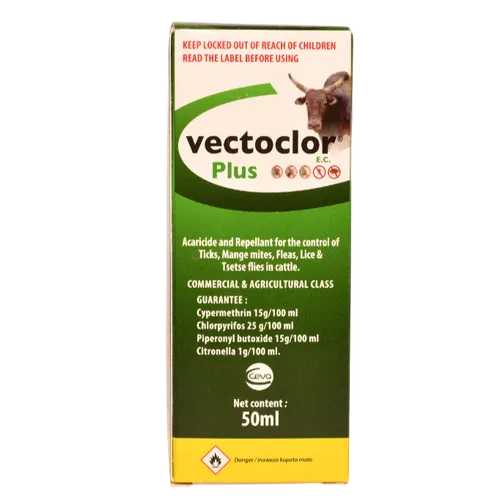 Its the first Acaricide in the market with 4 active ingredients. Vectoclor plus kills ticks, Fleas, Lice, Mange Mites and Tse-tse flies including nuisance flies..