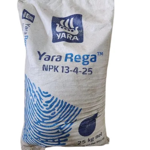 Yara Rega is a balanced NPK fertilizer specifically formulated to provide essential nutrients to a variety of crops. With a nutrient composition of 13% nitrogen (N), 4% phosphorus (P), and 25% potassium (K), this fertilizer is designed to promote healthy plant growth, enhance fruit quality, and support overall crop development.