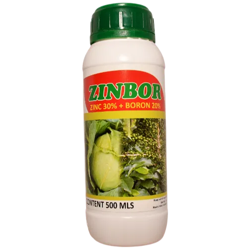 ZINBOR is a foliar fertilizer that combines high concentrations of zinc (30%) and boron (20%), essential micronutrients for plant health, growth, and productivity.