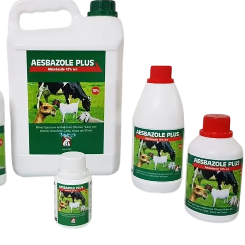 AESBAZOLE PLUS 10% is a veterinary anthelmintic solution formulated to control and treat internal parasitic infections in livestock and poultry.