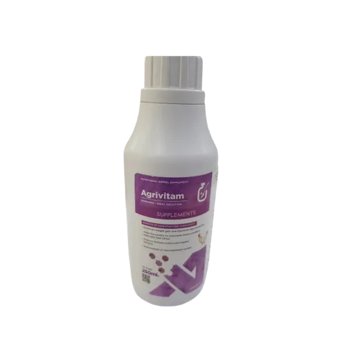 Agrivitam is a liquid multivitamin formulation designed to boost the overall health and performance of poultry and livestock. It provides essential vitamins and nutrients that support growth, productivity, and immunity in animals, especially during periods of stress or recovery.