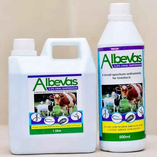 Albevas 2.5% is a broad-spectrum anthelmintic suspension used to treat and control a variety of parasitic infections in livestock.