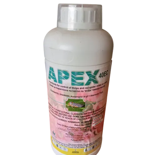 APEX 40EC® is a mixed foliar sprayed insecticide/miticide of Biopesticide and Neonicotin of Abamectin and Acetamiprid with trans laminar activity having both stomach and contact action.