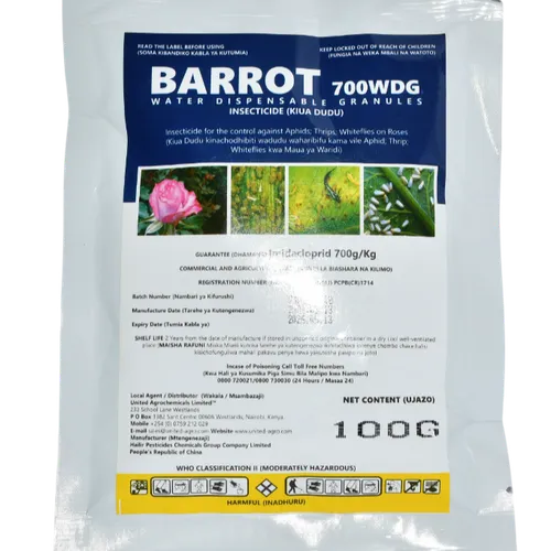 It is a highly effective systemic and contact insecticide for the control against Aphids, Thrips, Whiteflies on Roses .Barrot its a water dispensable granules that belongs to a chemical class Chloronicotinyls, which acts by binding to the nicotinic acetylcholine receptor.