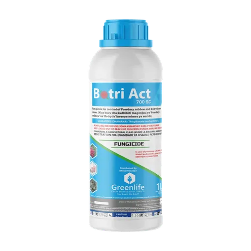 BOTRI ACT 700SC is a fungicide formulated as a suspension concentrate (SC), containing 700 g/L of Thiophanate-methyl, an active ingredient known for its broad-spectrum activity against various fungal diseases.