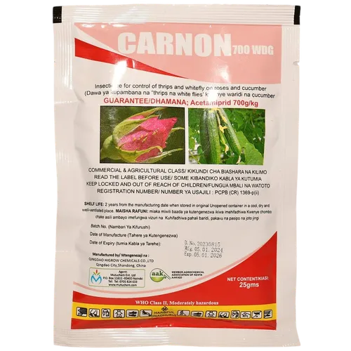 CARNON 700WDG is a systemic insecticide formulated as a wettable dispersible granule (WDG) containing Acetamiprid as the active ingredient.