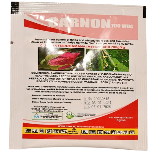 CARNON 700WDG is a systemic insecticide formulated as a wettable dispersible granule (WDG) containing Acetamiprid as the active ingredient.