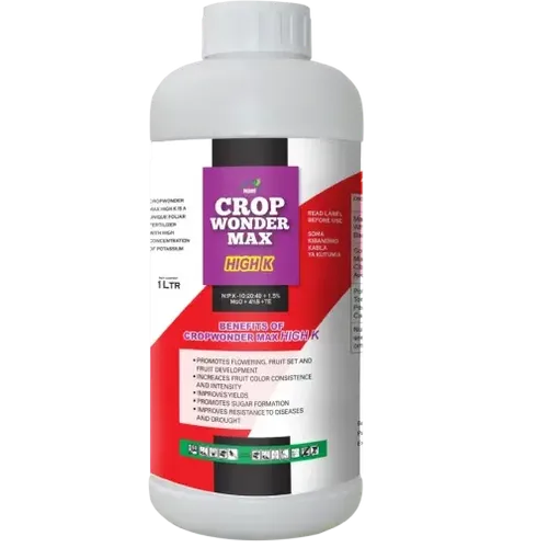 Crop Wonder Max High K (10:20:40) is a liquid foliar fertilizer specifically formulated to enhance flowering and fruiting in plants, especially in crops requiring a high level of potassium (K).