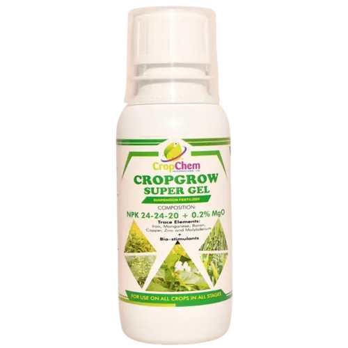 CROPGROW SUPER GEL is a concentrated foliar fertilizer designed to provide plants with a balanced supply of essential nutrients in a gel form.