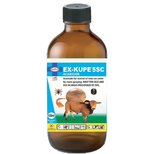 Deltamethrin EX-Kupe 5SC is a highly effective acaricide (mite and tick killer) formulated with deltamethrin, a potent synthetic pyrethroid insecticide.