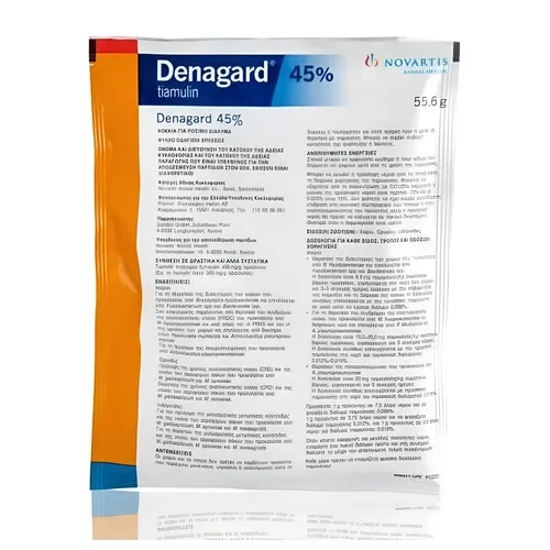 Denagard is an antimicrobial product that contains the active ingredient Tiamulin. It is used primarily for poultry and swine to control and treat bacterial infections, especially mycoplasmosis and pneumonia caused by Mycoplasma and Pasteurella species.
