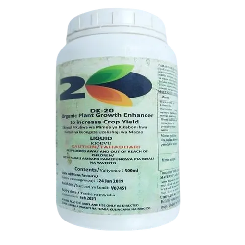 DK 20 is a liquid growth enhancer formulated to stimulate plant development and improve productivit
