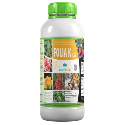 Folia K is a potassium-based liquid fertilizer designed for foliar application and chemigation. It is formulated without nitrates, sulfates, or chlorides, and is particularly effective in promoting vegetative growth and improving fruit quality.