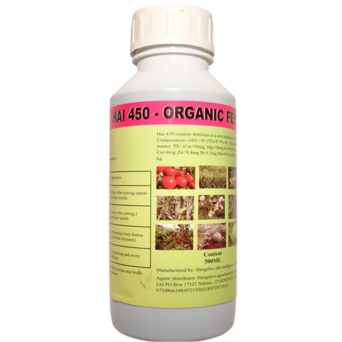 HAI 450 is a foliar fertilizer designed to enhance plant growth and improve productivity by providing essential nutrients, including a high concentration of Nitrogen (N), Phosphorus (P), and Potassium (K).