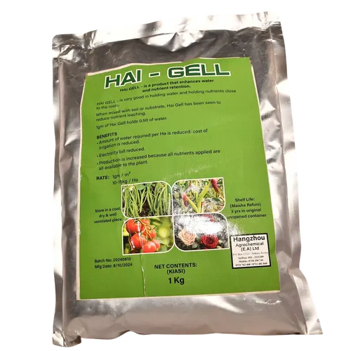Hai Gel Water Retainer is a water-holding gel designed to improve soil moisture retention. It is particularly useful for areas with water scarcity or for crops that require consistent soil moisture.