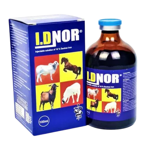 I.DNOR 10% is an injectable iron supplement formulated with iron dextran. It is used primarily in livestock to prevent and treat iron deficiency anemia, especially in young animals like piglets, calves, and lambs.