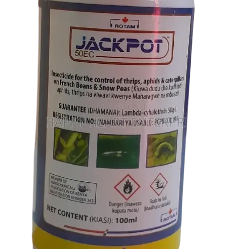 Lambda Jackpot 50EC is an insecticide formulated with Lambda-Cyhalothrin as its active ingredient. It provides effective control of various insect pests through both contact and ingestion, delivering a fast knockdown effect with lasting residual action.