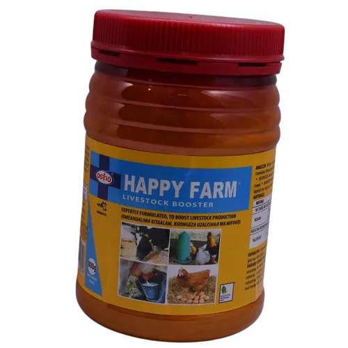 Osho Happy Farm 400gms is a nutritional supplement formulated for poultry and livestock to support overall health, growth, and productivity.