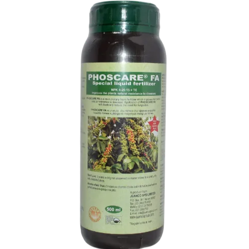 Phoscare FA NPK 4:25:15 is a specialized liquid fertilizer designed to provide a balanced supply of essential nutrients, particularly phosphorus (P) and potassium (K), with a lower nitrogen (N) content. This formulation is specifically beneficial during the flowering and fruiting stages of crop development.