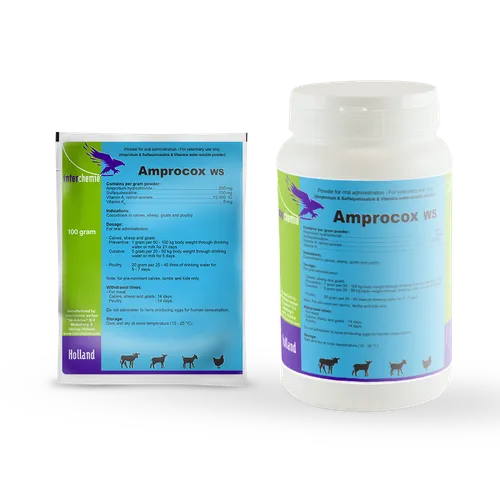 Amprocox WS disrupts the life cycle of coccidia parasites by inhibiting their ability to utilize essential nutrients like thiamine (Vitamin B1) and by interfering with their folic acid metabolism. This prevents the multiplication and spread of the parasites in the intestinal lining of poultry.