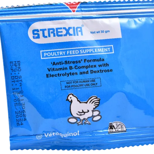 Strexia is a comprehensive multivitamin supplement formulated to support the health, productivity, and overall well-being of poultry. It provides essential vitamins, minerals, and amino acids to boost growth, immunity, and performance.