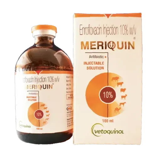 Quinintas Injection is an antimicrobial injectable solution containing Meriquin (also known as Meropenem), a broad-spectrum antibiotic used for the treatment of bacterial infections in animals.