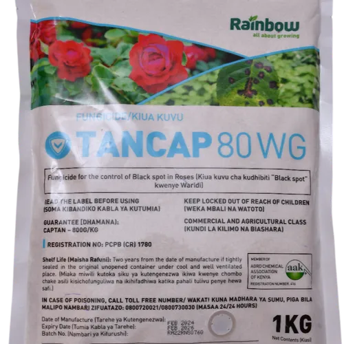 TANCAP 80 WG is a fungicide containing Captan as the active ingredient. It is formulated as a water-dispersible granule (WG) that effectively controls a variety of fungal diseases in many crops.
