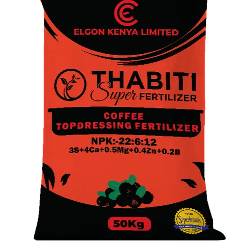 Thabiti Coffee 22:6:12 is a compound fertilizer specifically formulated for coffee farming. It provides a balanced mix of essential nutrients to enhance the growth, productivity, and quality of coffee plants.