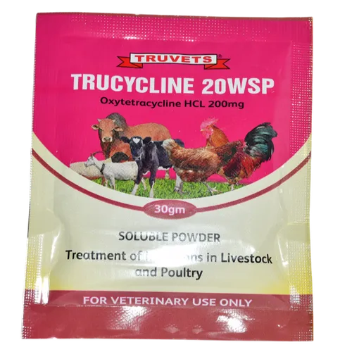 Trucycline 20WSP is a water-soluble powder formulation containing tetracycline, specifically designed for use in the treatment and prevention of bacterial infections in livestock.