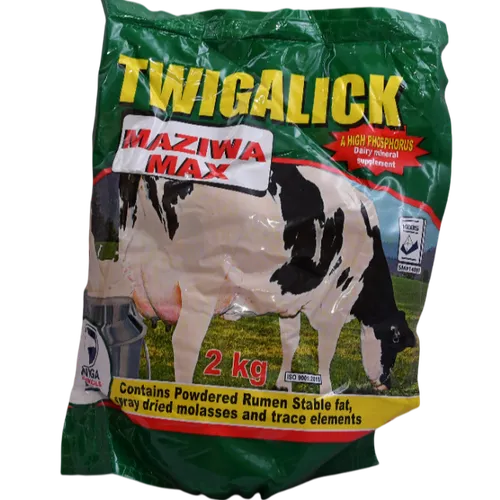 Twiagalick Maziwa Max is a high-performance feed supplement designed to significantly boost milk production and improve the quality of milk in dairy cows.
