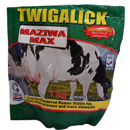 Twiagalick Maziwa Max is a high-performance feed supplement designed to significantly boost milk production and improve the quality of milk in dairy cows.